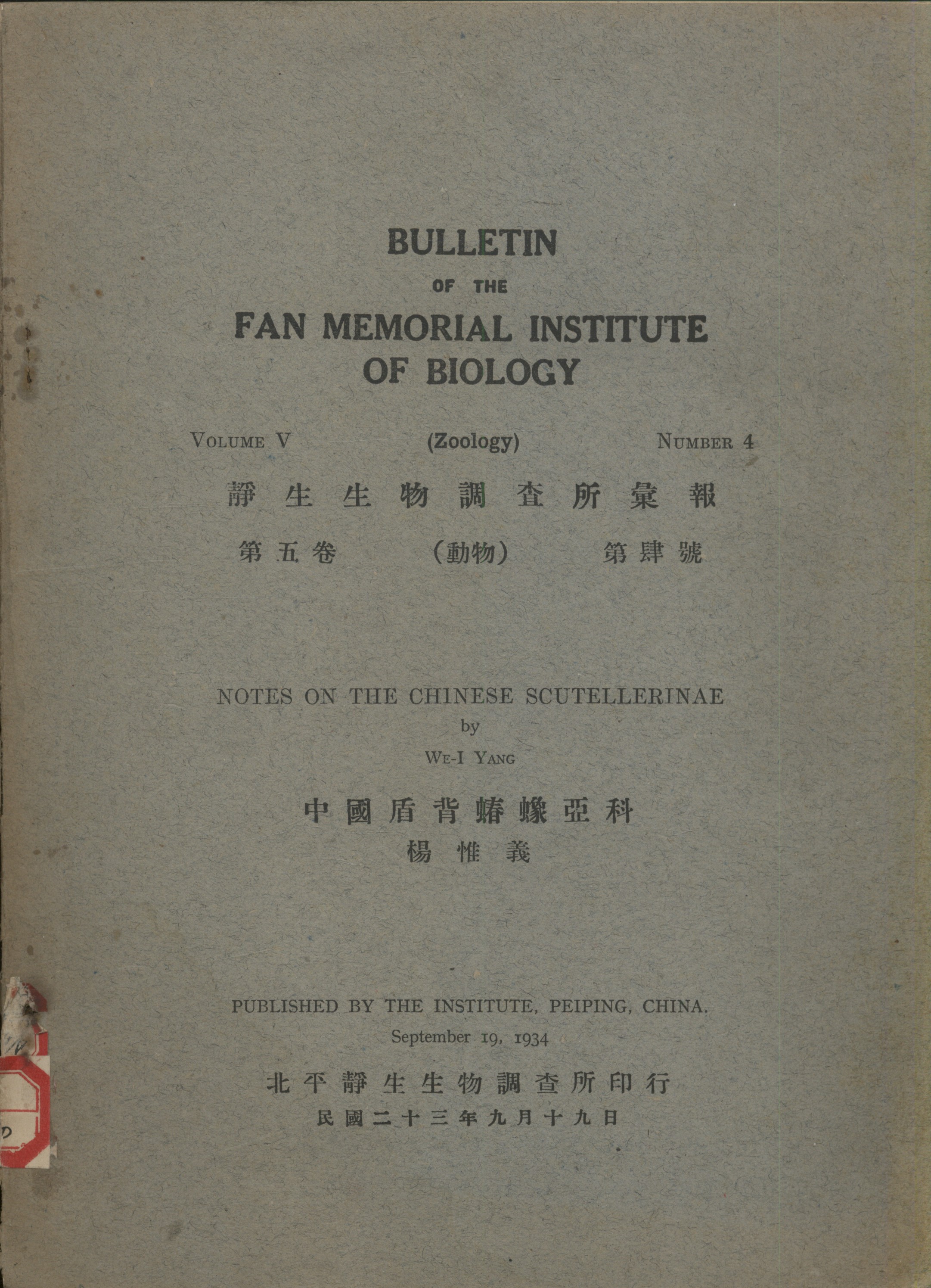 Published by teh Institute, Peiping, China