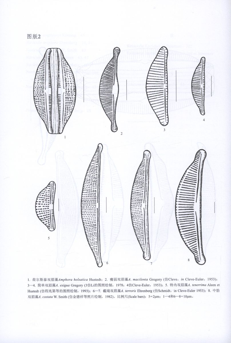 This book systematically introduces 180 species and 33 varietas, 11 genera beonging to Cymbellaceae , describing their morphological characteristics, cell structure , reproduction and ecological habit. Text language in Chinese with Latin name. The Appendix I is an English Key to the Genera and Species of Cymbellaceae; Appendix 2 is Chinese-English terms.