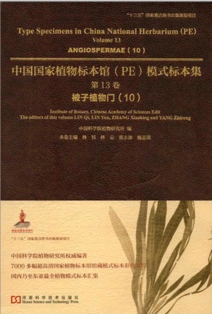 Type Specimens in China National Herbarium (PE)Volume 13 Angiospermae (10)《中国国家植物标本馆(PE)模式标本集(第13卷):被子植物门10(英汉对照)》共收有模式标本7451份,含4356份主模式、2203份等模式、319份后选模式、8份等后选模式、3份新模式、3份等附加模式、27份合模式、94份等合模式、279份副模式、170份等副模式,隶属于194科、1134属、6159种、66亚种、1114变种和122变型。全书各科依据《中国苔藓志》及《中国植物志》系统排列,属、种、亚种、变种、变型的名称按字母顺序排列。每张扫描模式标本相片的图注解释均标注中名、学名、原始文献、模式类型(主模式、等模式、后选模式、等后选模式、新模式、等新模式、附加模式、等附加模式、合模式、等合模式、副模式、等副模式)、采集地点(国名、省名、县名、山名)、海拔、采集时间(年月日)、采集人和采集号。《中国国家植物标本馆(PE)模式标本集(第13卷):被子植物门10(英汉对照)》中的采集人根据《中国植物标本馆索引》(傅立国,1993)书写,采集地根据《中国地名录一中华人民共和国地图集地名索引》(国家测绘局地名研究所,1997)书写。