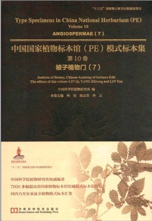 Type Specimens in China National Herbarium (PE)Volume 10 Angiospermae (7)《中国国家植物标本馆(PE)模式标本集(第10卷):被子植物门7(英汉对照)》共收有模式标本7451份,含4356份主模式、2203份等模式、319份后选模式、8份等后选模式、3份新模式、3份等附加模式、27份合模式、94份等合模式、279份副模式、170份等副模式,隶属于194科、1134属、6159种、66亚种、1114变种和122变型。全书各科依据《中国苔藓志》及《中国植物志》系统排列,属、种、亚种、变种、变型的名称按字母顺序排列。每张扫描模式标本相片的图注解释均标注中名、学名、原始文献、模式类型(主模式、等模式、后选模式、等后选模式、新模式、等新模式、附加模式、等附加模式、合模式、等合模式、副模式、等副模式)、采集地点(国名、省名、县名、山名)、海拔、采集时间(年月日)、采集人和采集号。《中国国家植物标本馆(PE)模式标本集(第10卷):被子植物门7(英汉对照)》中的采集人根据《中国植物标本馆索引》(傅立国,1993)书写,采集地根据《中国地名录——中华人民共和国地图集地名索引》(国家测绘局地名研究所,1997)书写。