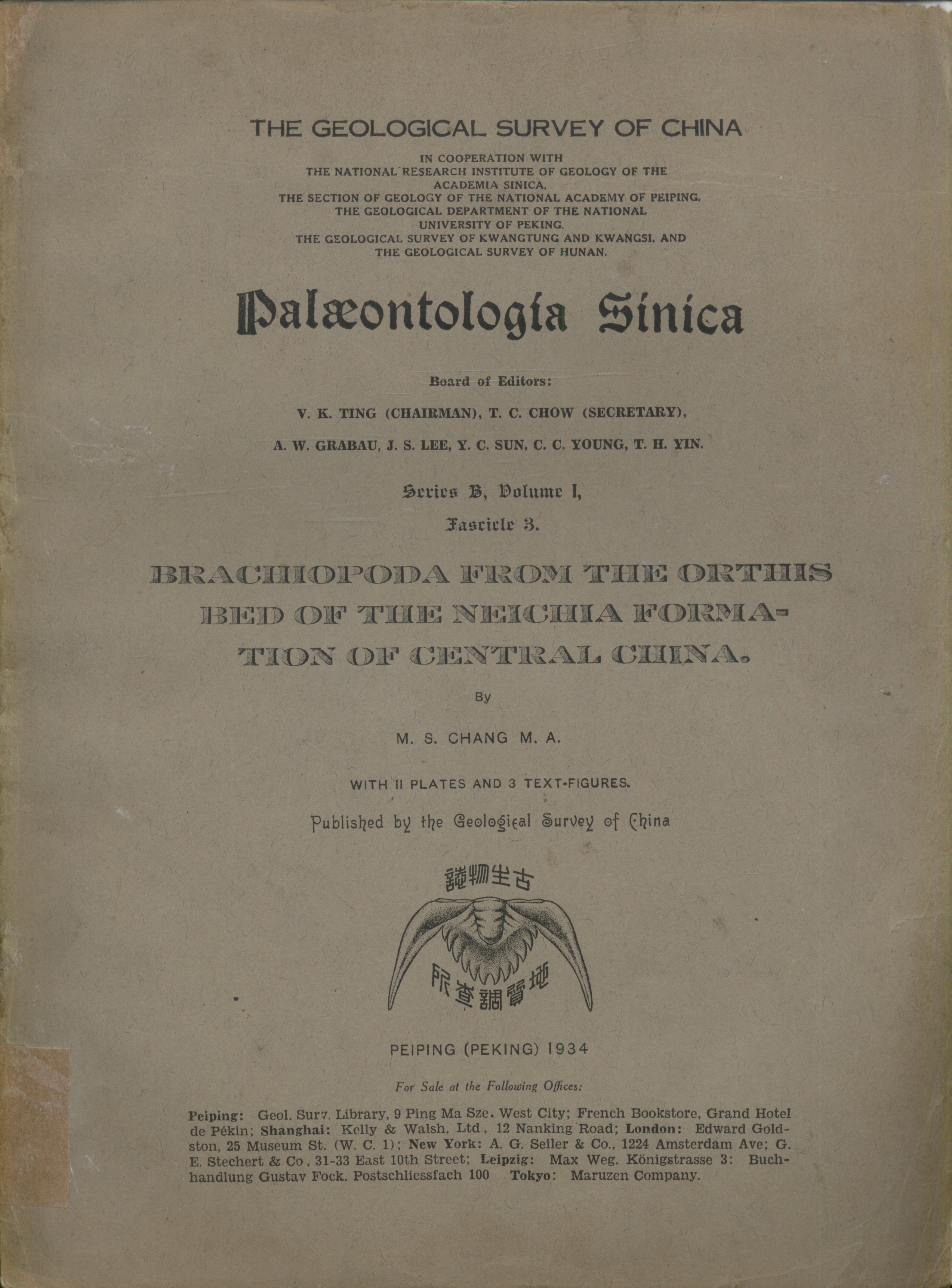 Palaeontological Sinica (Series B, vol.1, Fascicle 3) Brachiopoda From the Orthis Bed of the Neichia Formation of Central China