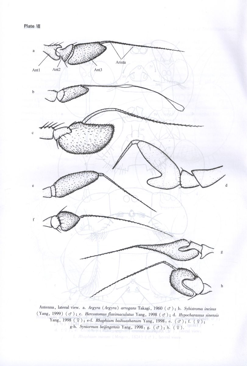 The long-legged flies or Dolichopodidae are one of the largest groups in Brachycera. Now 226 genera and 6870 species are known from the world. They are easily identified by the metallic green body with slender legs. The adults and larvae are predacious, including some important predators of bark beetles and mosquitoes, except for larvae of Thrypticus phytophagous.
